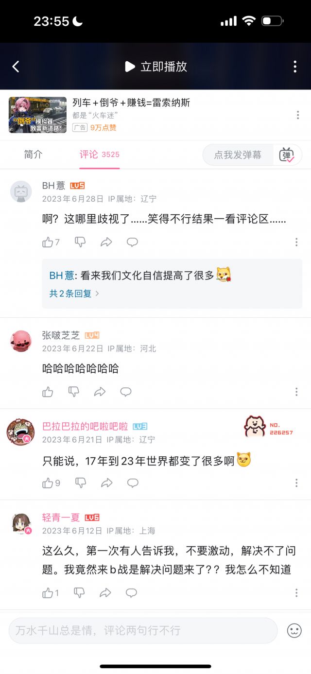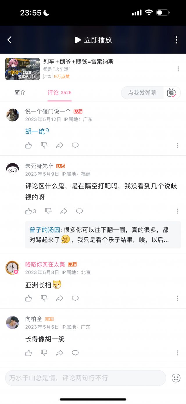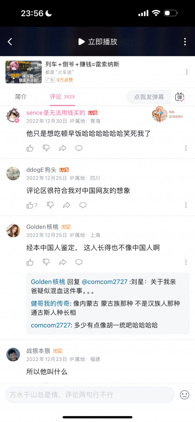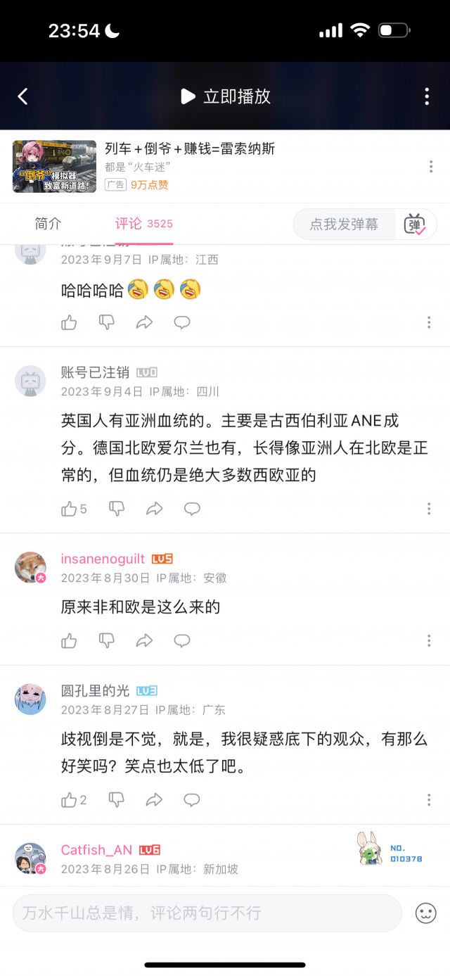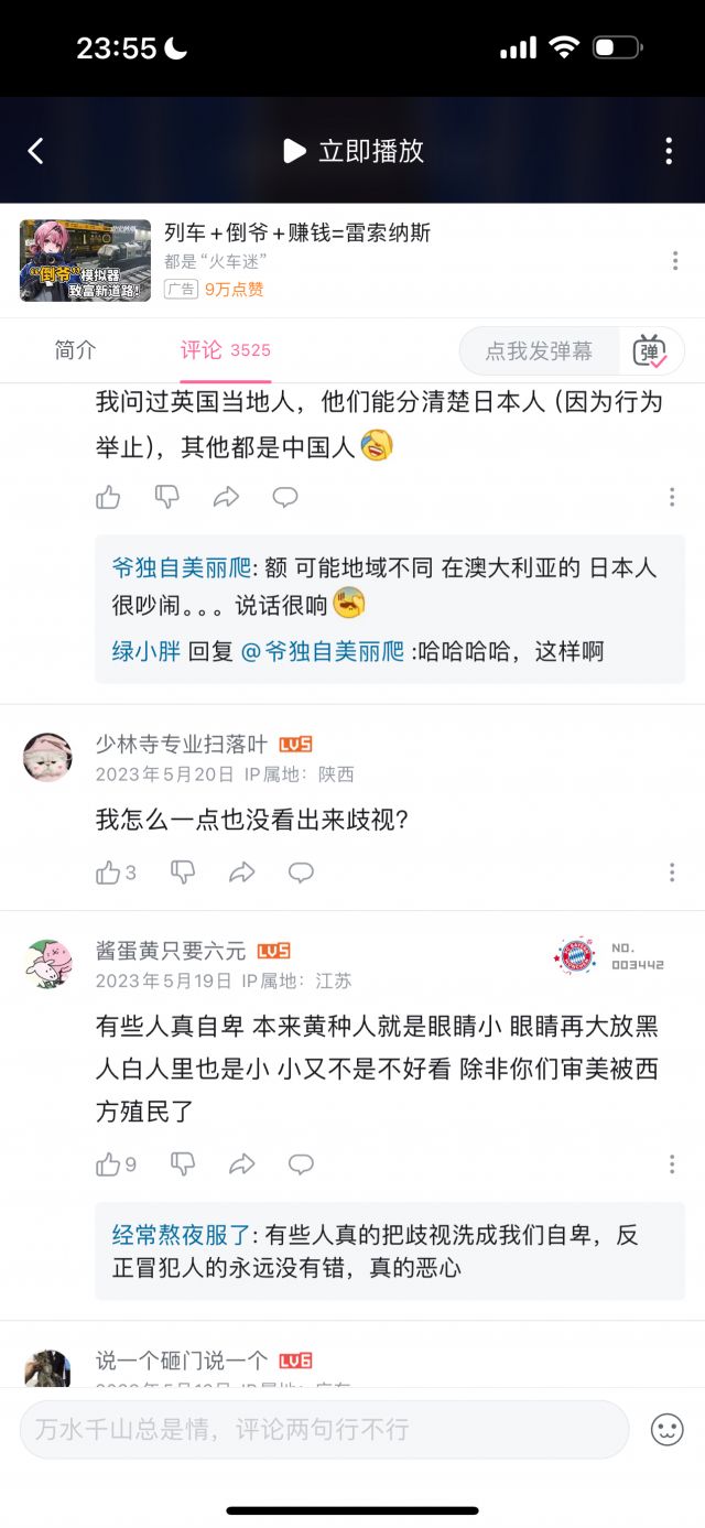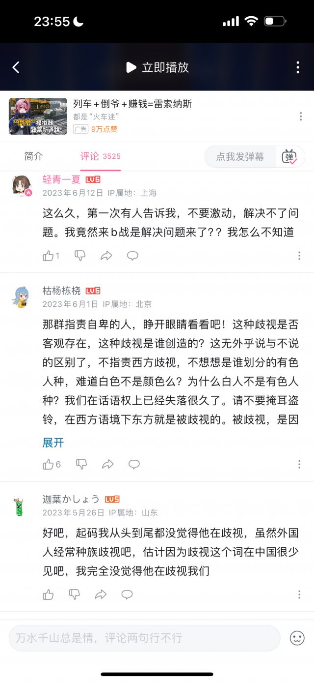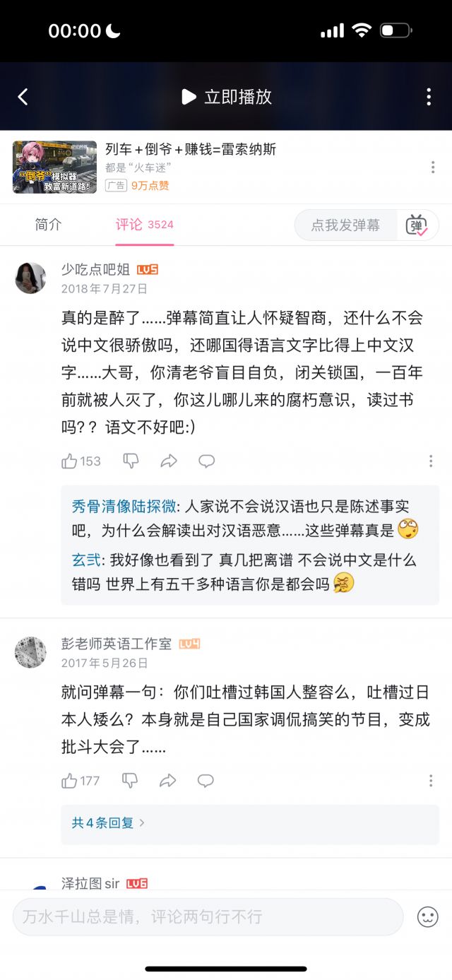 但我统计了数十条评论,压根没有找到几条是能体现“玻璃心”的,玻璃心的评论,和讽刺玻璃心的评论的比例,可能不到1/100,即使部分“玻璃心”评论可能被举报删除了,但这个比例依然极为夸张,按时间排序,近几个月依然有大量评论在乐此不疲地对着国人的玻璃心一顿输出,但我按时间排序,手都翻累了才终于找到一条评论是在表达对于这名英国人的言论不满的。