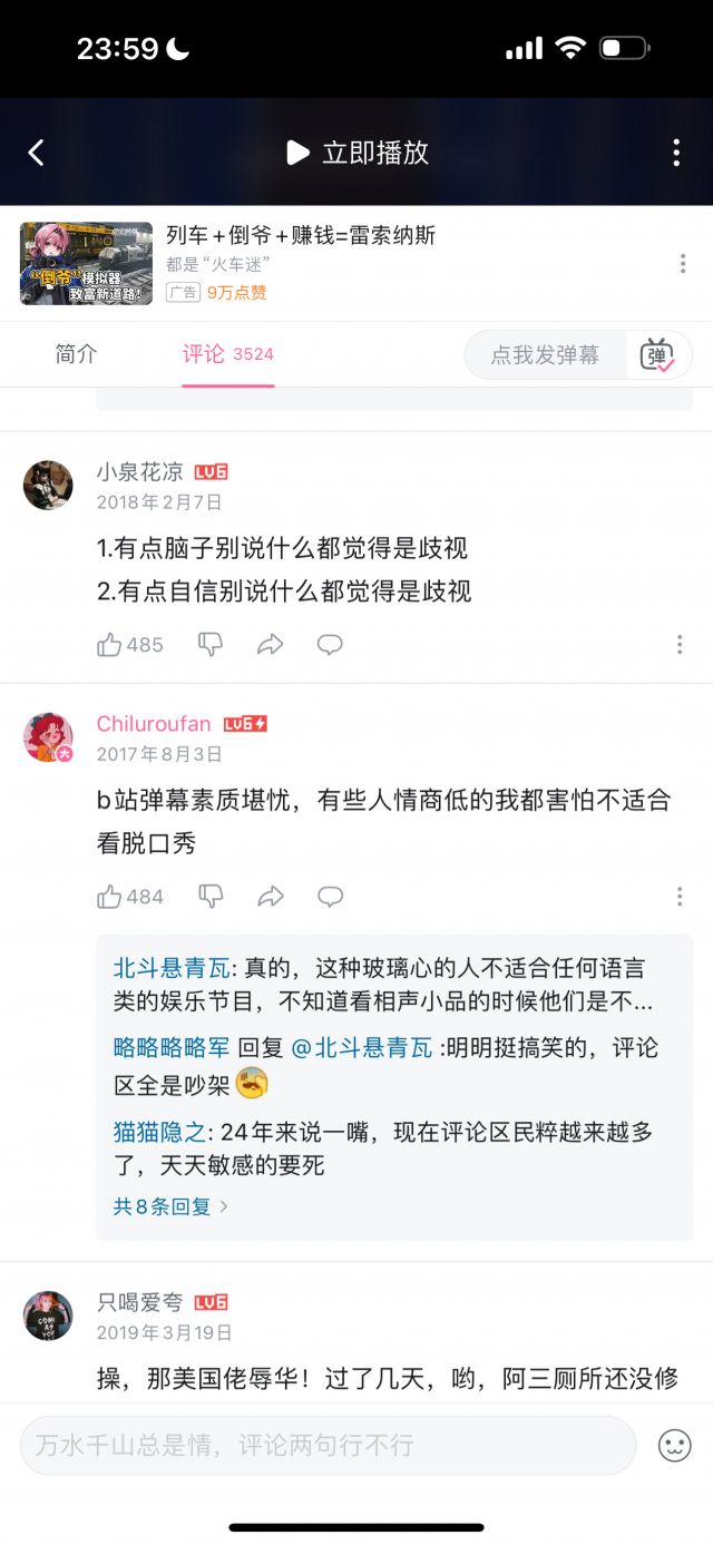所以究竟是为什么评论区会是这个样子呢?我绝非在说玻璃心这种行为不存在,但很多人对于讽刺玻璃心的热情是不是太高了些?