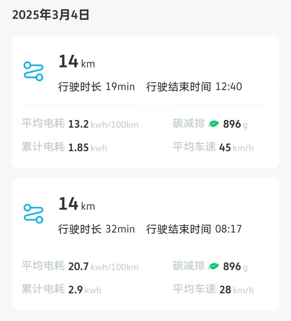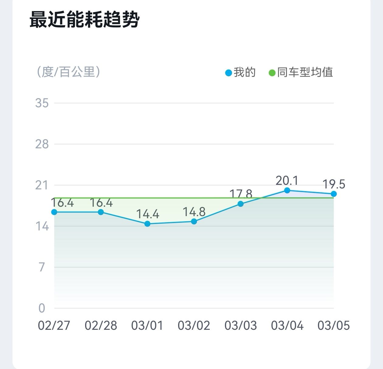 前段时间也是冬天,气温也差不多,也开了空调和座椅加热,电耗好歹能控制在17-18度。就不太理解怎么一下涨这么多。