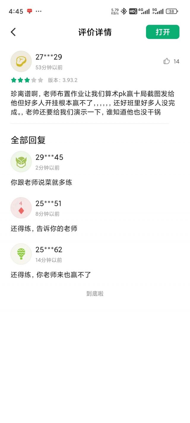 小学生数学学习app,有个比口算的pk功能,一帮人去这里面炸鱼,虐学龄前和小学生