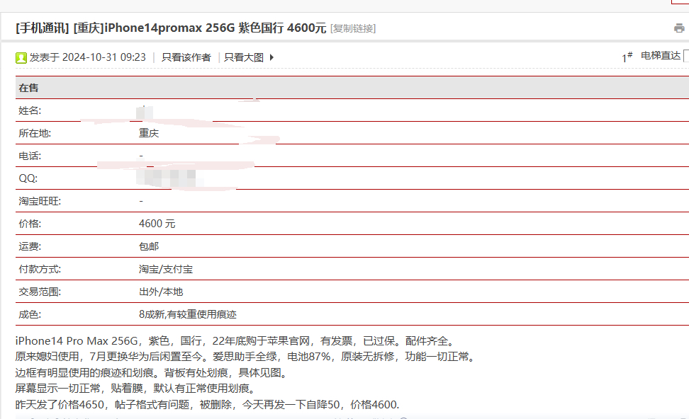 国行,512,电池目前88,京东购入,23年用apple care换了后盖和电池,可以提供维修记录和发票