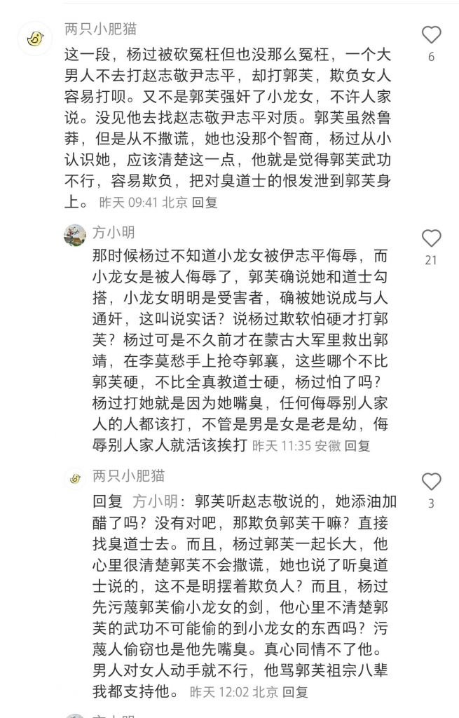 当年最穷困潦倒的杨过遇到了最衣着光鲜明艳靓丽的郭芙,由此产生的自卑和随之而来的征服欲伴随了他一辈子,所以他要拼命告诉自己小龙女比郭芙强