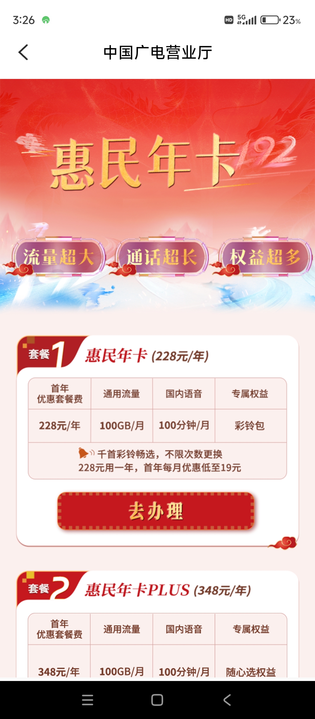 你办广电惠民卡就好了呀,收货地即归属地,100G通用流量+100分钟主叫通话,流量可下个月结转使用,228一年,平均19元人民币每月,每年在套餐到期前一个月续约就一直是这个价格。(校园卡是240一年流量更多了,就看你愿不愿意多花一块钱了)