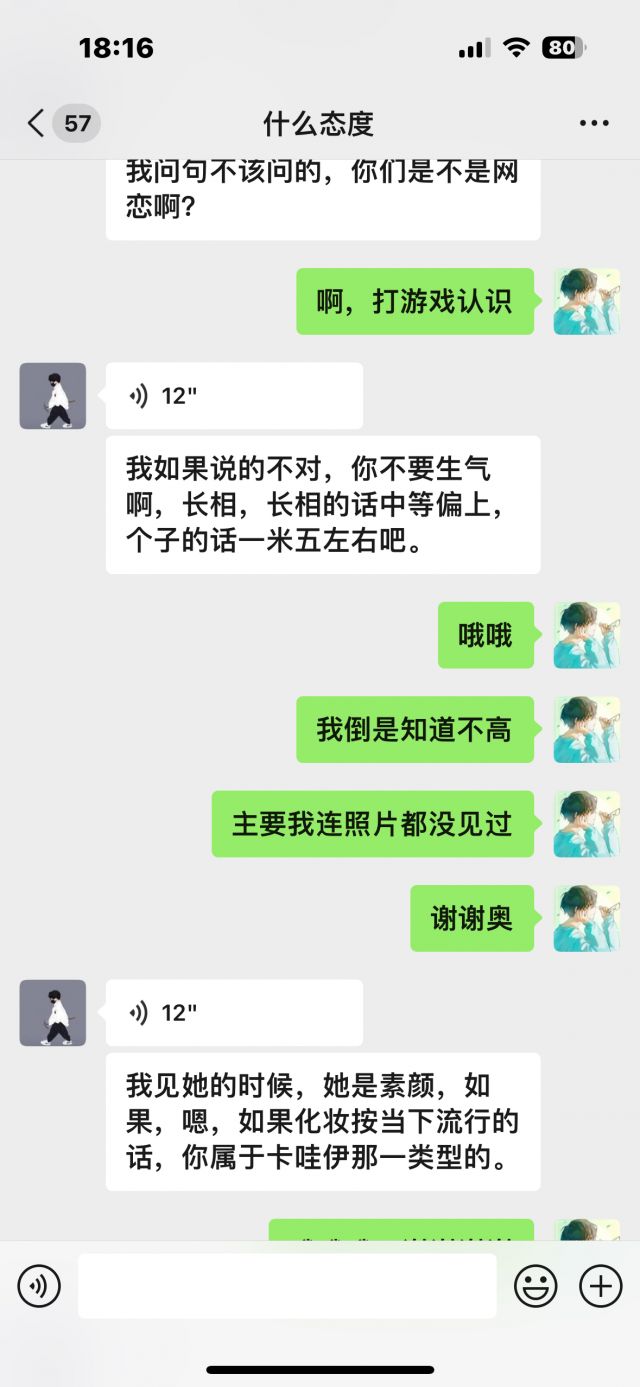 确实不是现实里认识的,一开始就是为了相互得到情绪价值,确定关系是我自己上头了就直接告白,她也接受了当时还不知道长啥样,哪怕是坦克我也认了,自认自己长的也不咋的,后面她发过一个闪照,自己说身高不高,我还以为捡到宝了是个萝莉死宅多年觉得有个陪伴,到现在也半年了,两个人都很宅,大门不出,二门不迈的,在我家里蹲时候俩人高强度连麦。我这人性格比较倔,她也是。