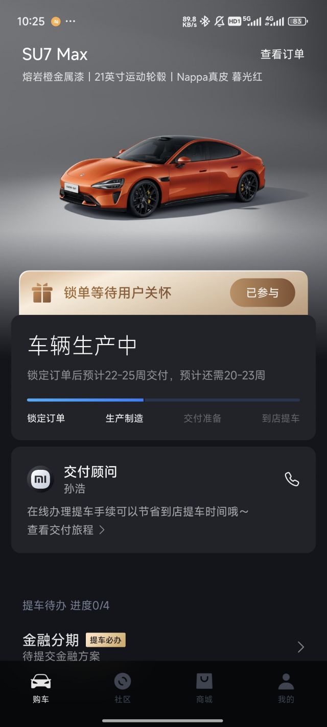 然后买低配两年贷款就可以了,顶配四年。不过我现在是一人吃饱全家不饿,也没有别的大开销。