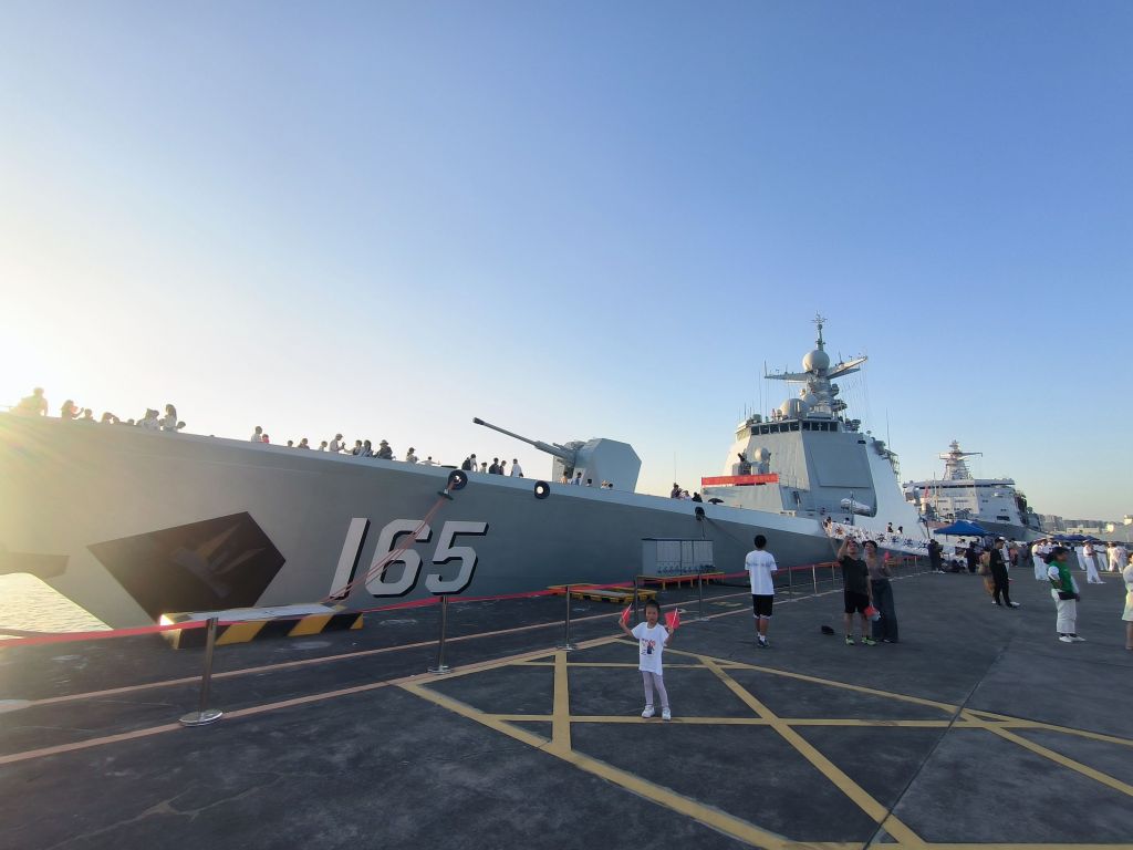 展出中的052D唐山舰与054A邯郸舰 ...