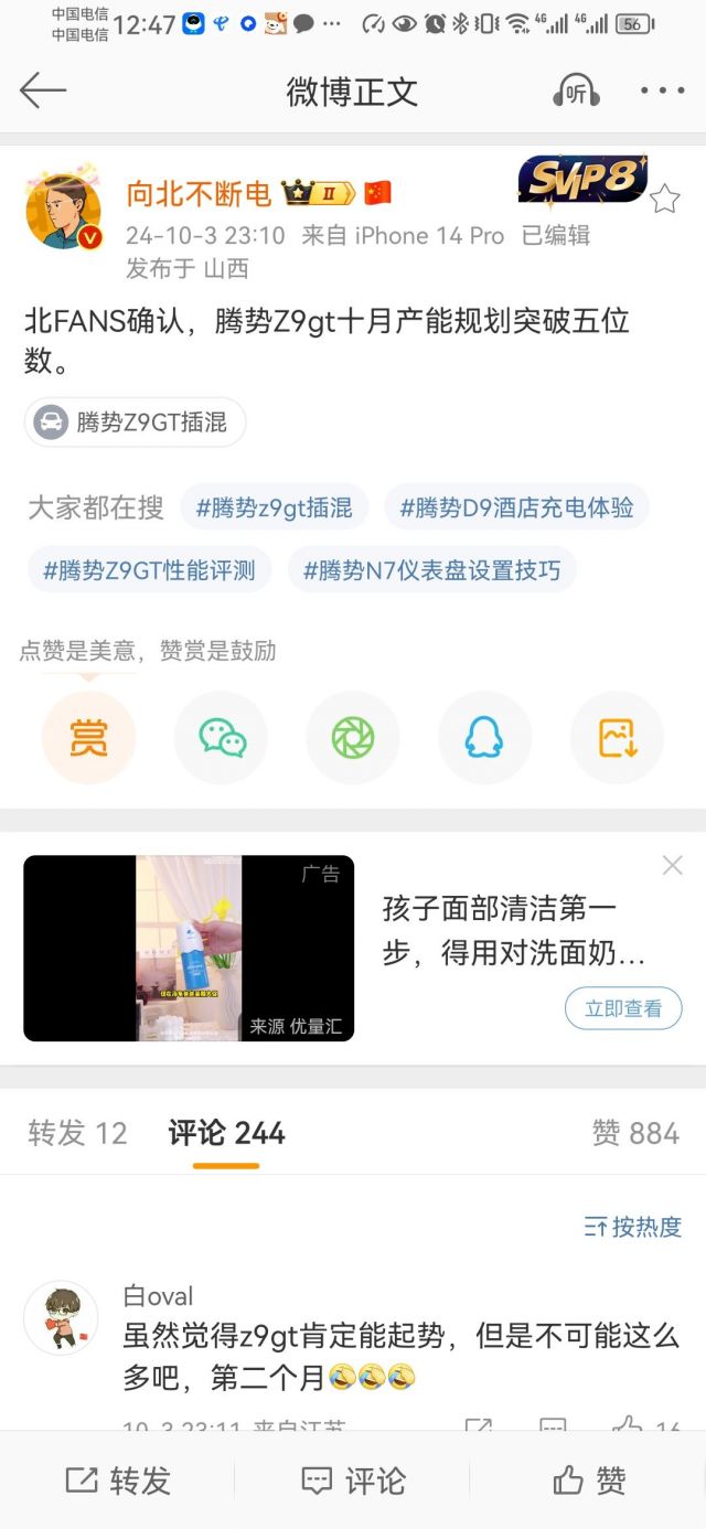 国庆了俺娘终于有空了,今天带她去看了z9gt,这几天她也精品带她看了一圈(su7max et7 ls6)。看下来她觉得还ok的(她觉得su7好看 et7坐的晕),鉴于我特别喜欢非z9不买,基本拍定了。