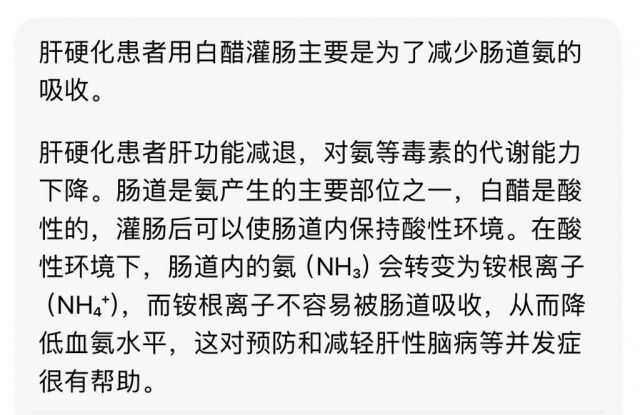 后来看到了抖音的隐藏对话。目前看对话只能看出,开始是那个同事也是家人肝硬化走了。建议了白醋灌肠被我阻止之后,她一气之下去他家灌了。再之后,两人也都觉得不对。但她觉得焦虑不能缓解所以还是每天去。