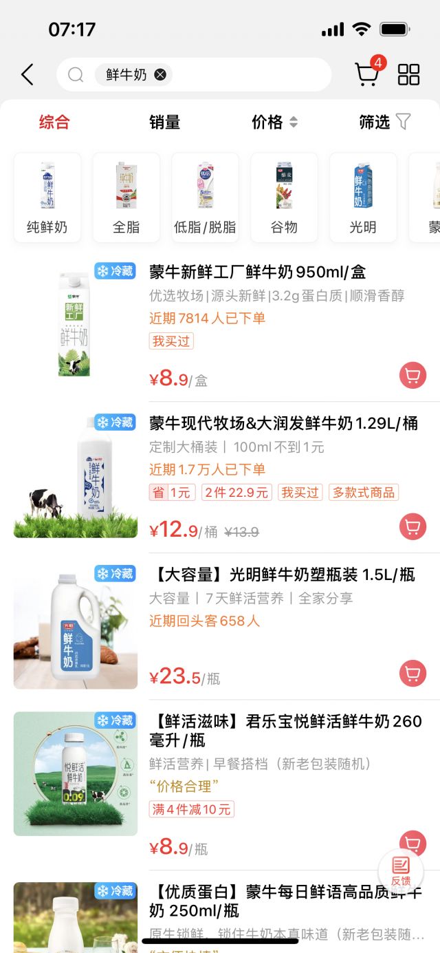 我还是截取的比较便宜的奶品牌(还有20-30块一升的更贵的有机奶没拍)