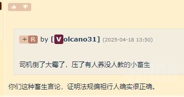 他编辑了,他最开始的回复是"司机倒了大霉了,压了有人养没人教的小畜生”。还有400多人点赞。