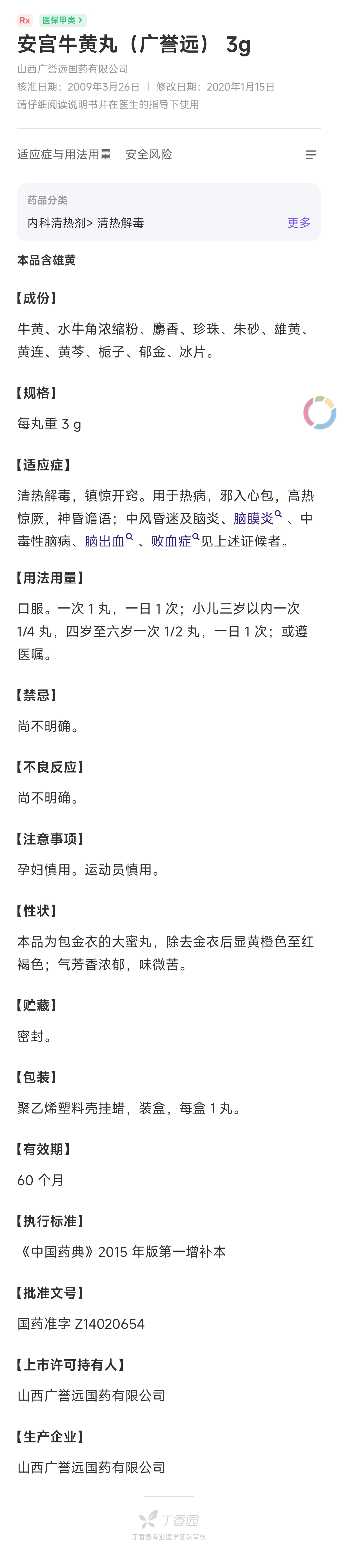 1、正宗安宫牛黄丸,犀牛角天然麝香那种,人快不行了来一个急救,给送icu留出时间或者给交代后事留出时间