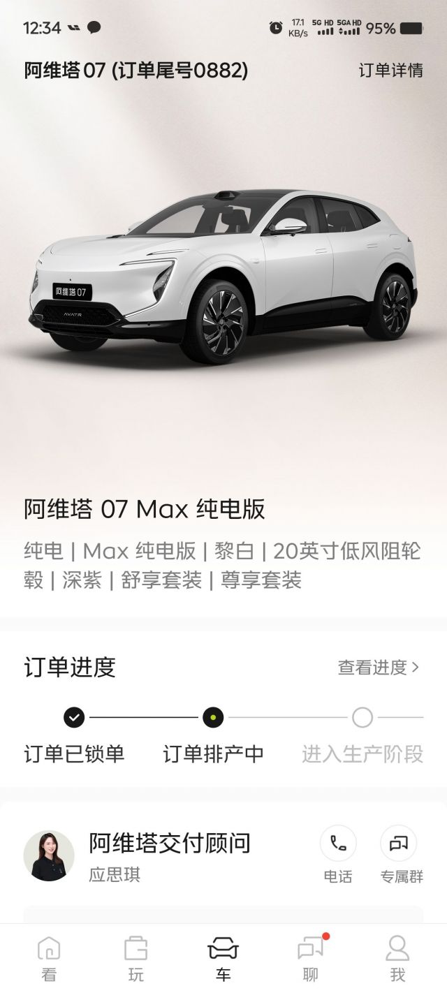 10月8大定的阿维塔07增程max无任何选装加装,20寸轮毂的,销售开始和我说4周左右肯定能提车,后来变成6周一定能提车,然后又和我说可能要延期,让我拿什么补贴。