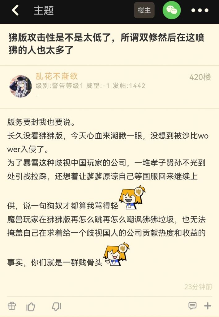 虽然这人从2020年以后就没发过魔兽相关的帖子