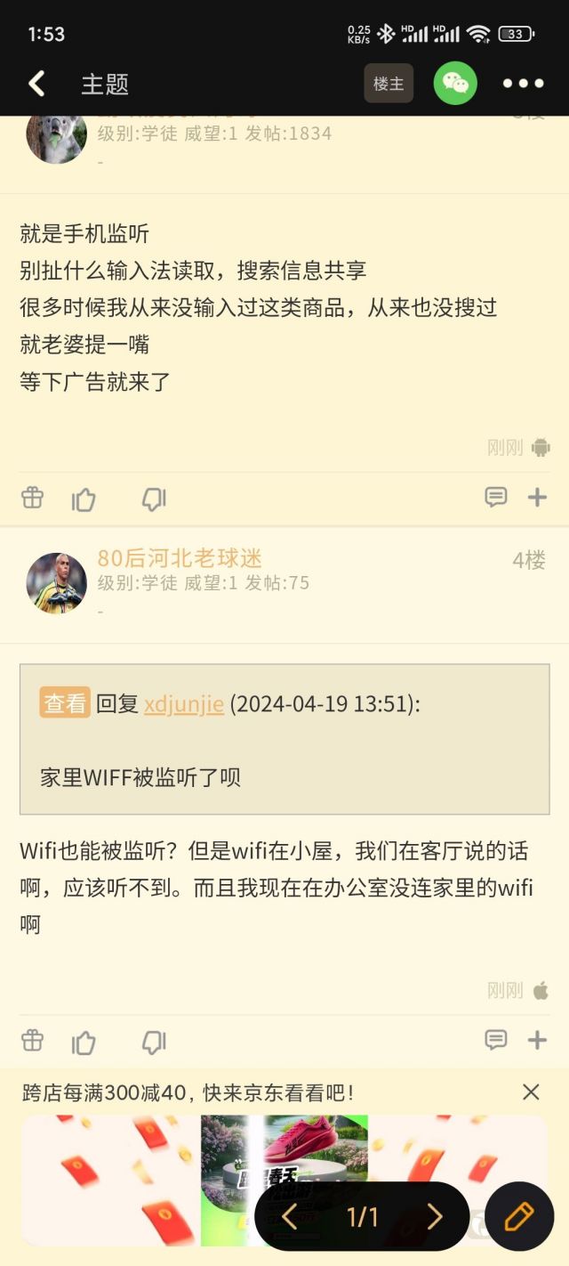 刚才刷泥潭看到这个广告惊呆了,这踏马是被监听了还是什么情况?本人近一年从没在任何平台搜索过凉鞋这俩关键字,之前给娃买秋冬鞋也是媳妇用她自己手机搜索的。这广告是大面积推送还是手机监听到我俩说话了