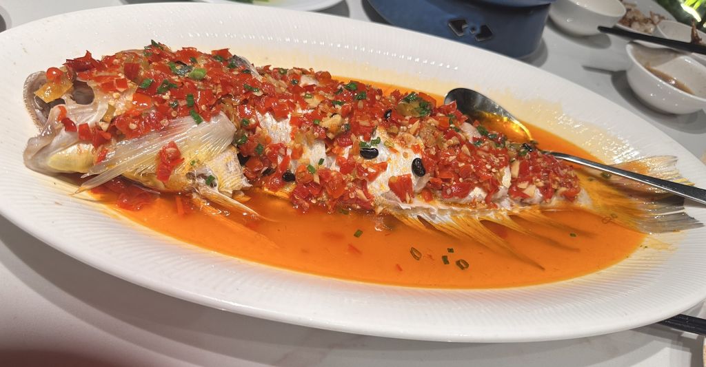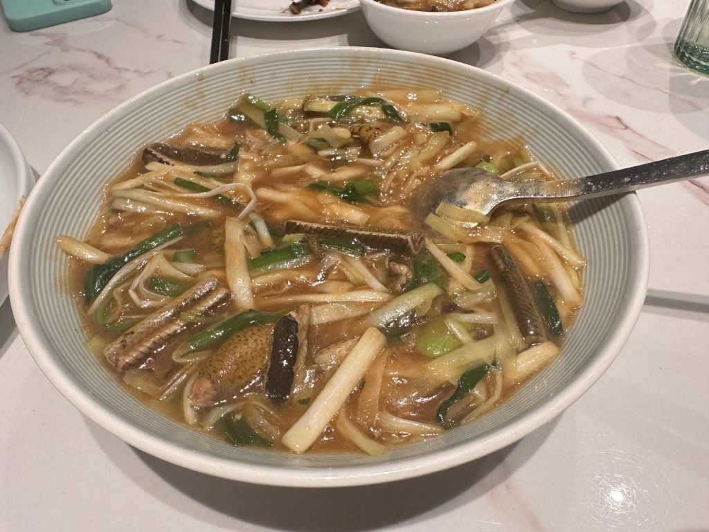 新荣记的煎带鱼是真的挑不出来一点刺,当天的钓带不需要过多的调味料,去骨煎熟就已经非常鲜美了