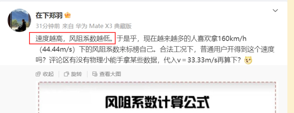 这样算下来,160km/h下的0.195cd风阻系数相当于120km/h下的0.346cd咯?