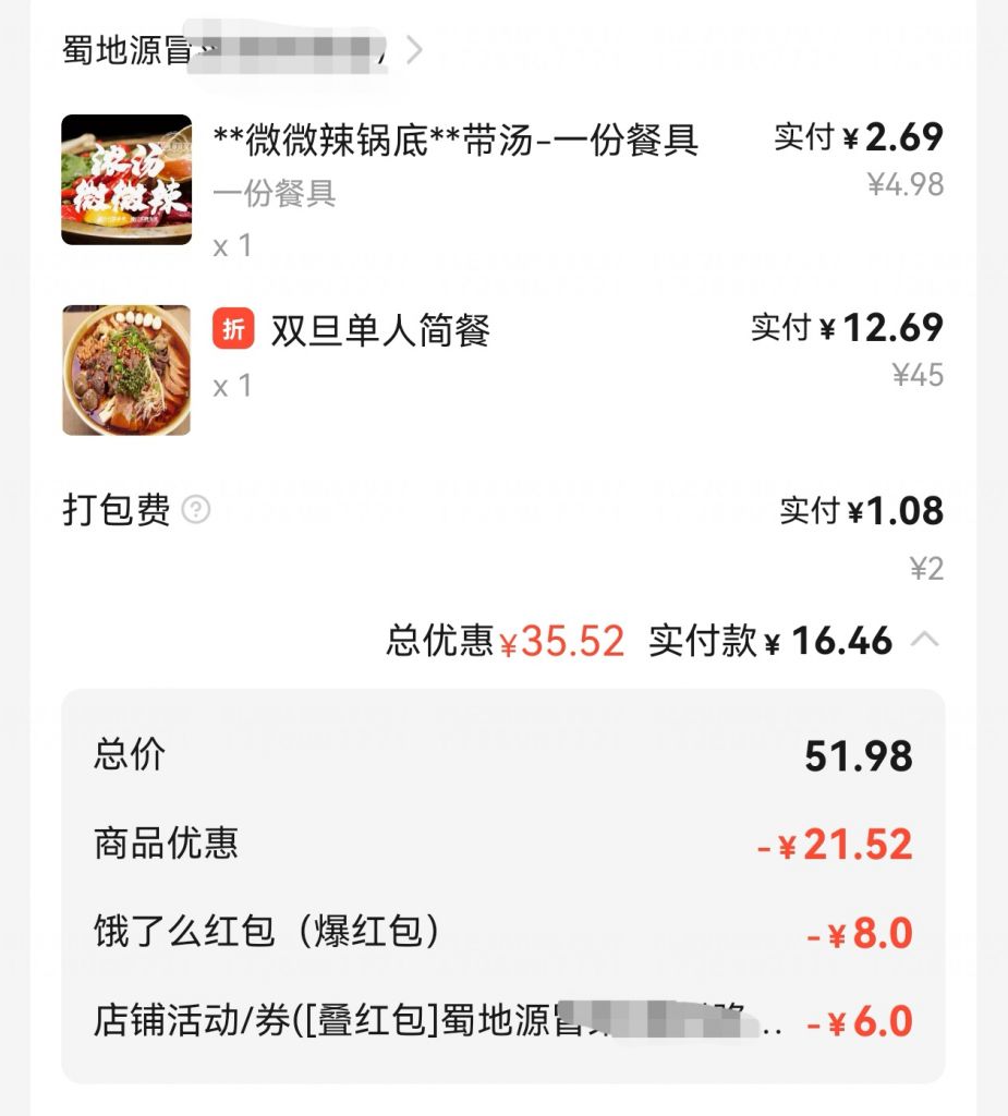 步骤3⃣:下单时,若有其他饿了么红包或饿了么会员红包,能一起叠加抵用(下单能用店铺券和饿了么红包两个优惠!)