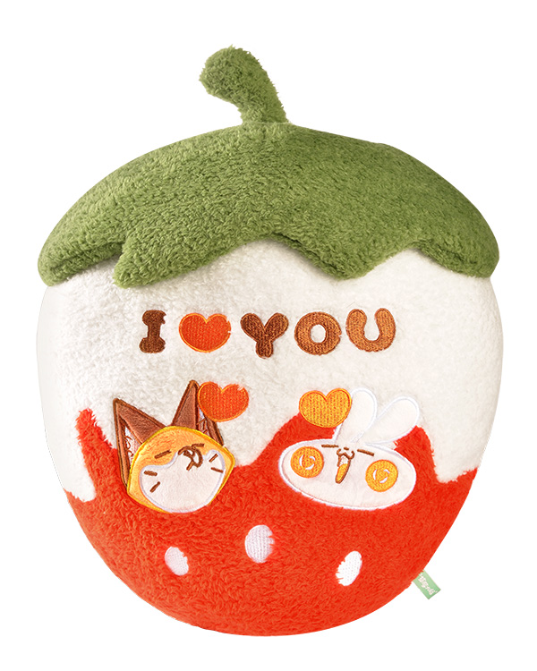 由 GSAS 出品的 <草莓大福> 草莓抱枕 ,材质为聚酯纤维等,尺寸约 35cm×17cm×27cm,售价 2900 円 (未税),预计 23 年 3 月发售。