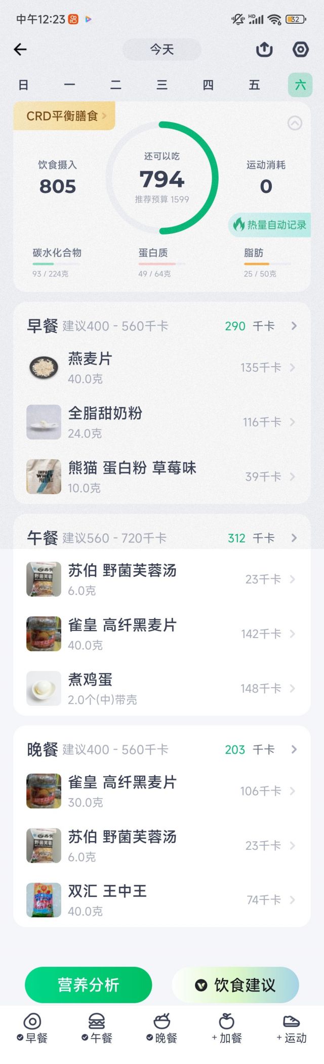 高纤燕麦片加上蔬菜蛋汤。午饭晚饭的主力食粮。高纤麦片牌子很多我用的公司发的福利购物卡买的。蛋汤牌子苏伯。很便宜。