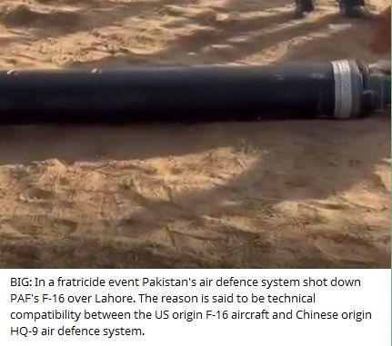 有消息说小巴一架F16被自家的红旗9给抽下来了