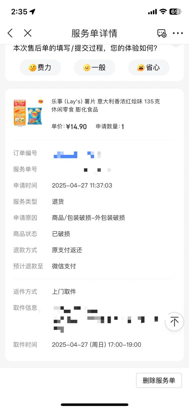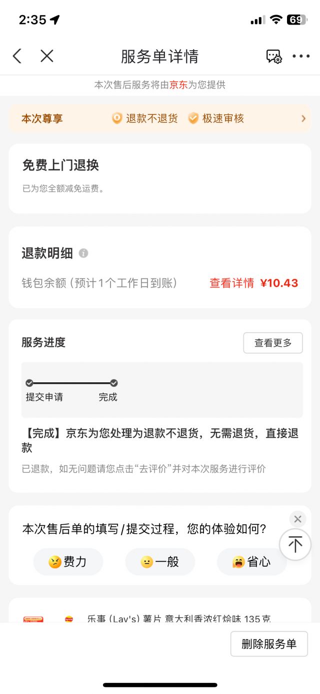 自从杨笠事件后,因为京东外卖引流第一次用回京东。买了一些零食,送到的时候外包装受损薯片漏出来了,遂申请退款。我一开始还很高兴退款效率很高,一两分钟就审批好了。