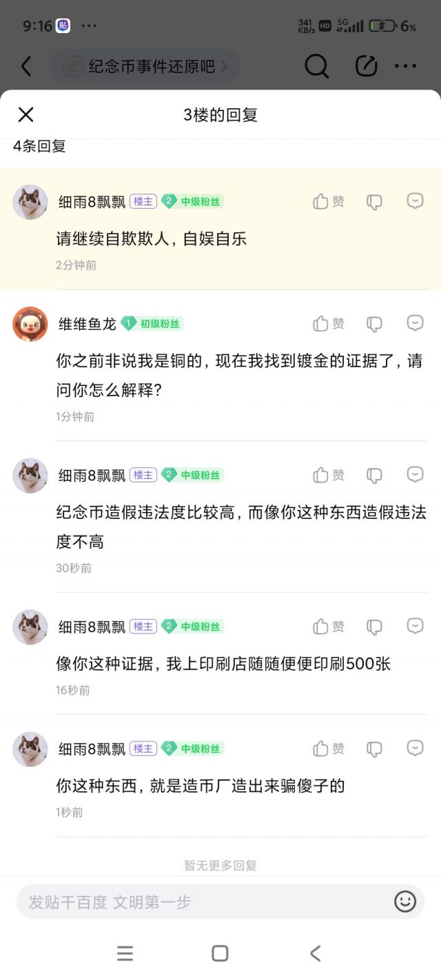 然后接下来第六张图我的账号又被他封禁,然后我获得了第七张图的评论。