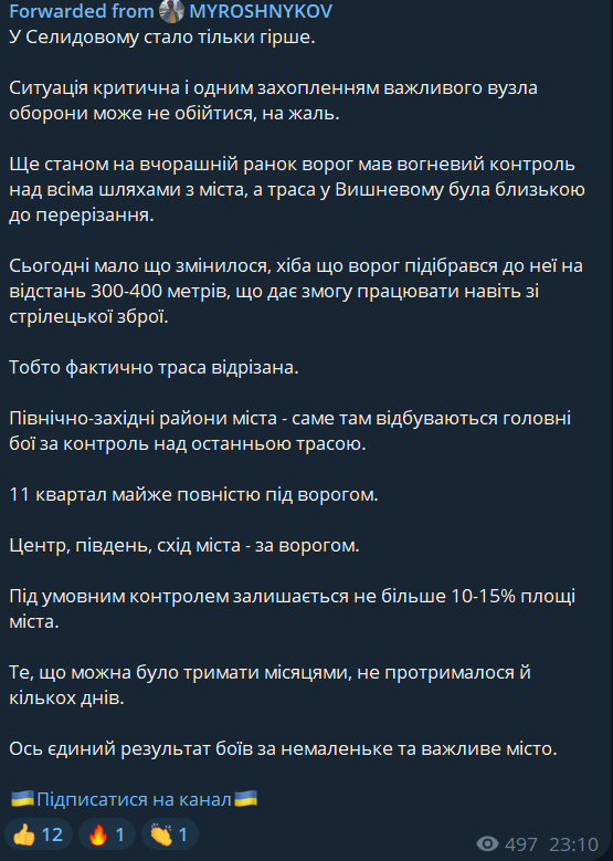 我们目前仍不知道乌军还能坚持多久,但也许今晚,有组织的抵抗将彻底不复存在,谢利多沃正在走向败亡的命运仍然没有丝毫的改变。