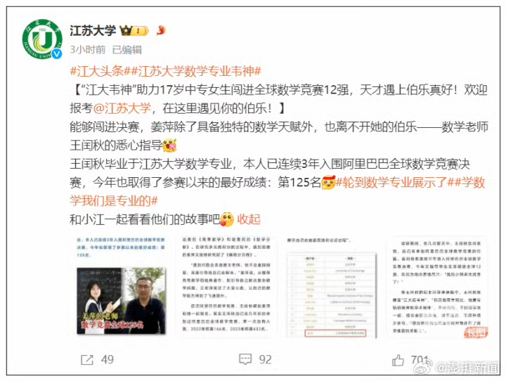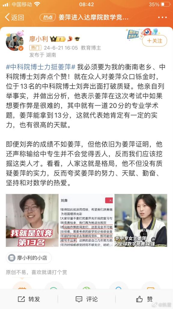 这是可以说的吗,支持大专女摇身一变数学天才在奥数竞赛里勇夺名次的人,多半数学成绩没上过及格线。