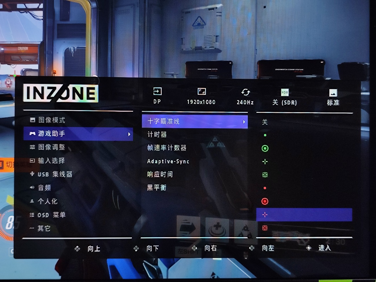 这个功能算是当下电竞屏的标配,多种样式可选,根据自己喜好来就行,个人觉得对射击准度的提升非常玄学,在什么场景下有用呢,就是手里没有武器的情况下,需要一个十字准星,和敌人肉搏战的时候有优势。