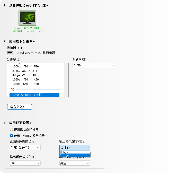 带宽方面在HDMI2.1下支持8bit、240Hz,在DP接口下可以开启10bit 240Hz,以及HDR。