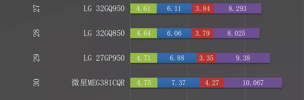 240Hz刷新率方面从飞碟图的测试中可以看到INZONE M3在快速的OD档位是表现最佳的,加压最快会有一定拖影,显示机器的最佳延迟在4.7ms左右。和官方基本一致,当然IPS肯定不能做到和TN完全的1ms响应,但在4.7ms下也完全适用于绝大多数游戏,按照现在最新的“小雪人的响应天梯图”来看,INZONE M3排在29位是没有问题的。