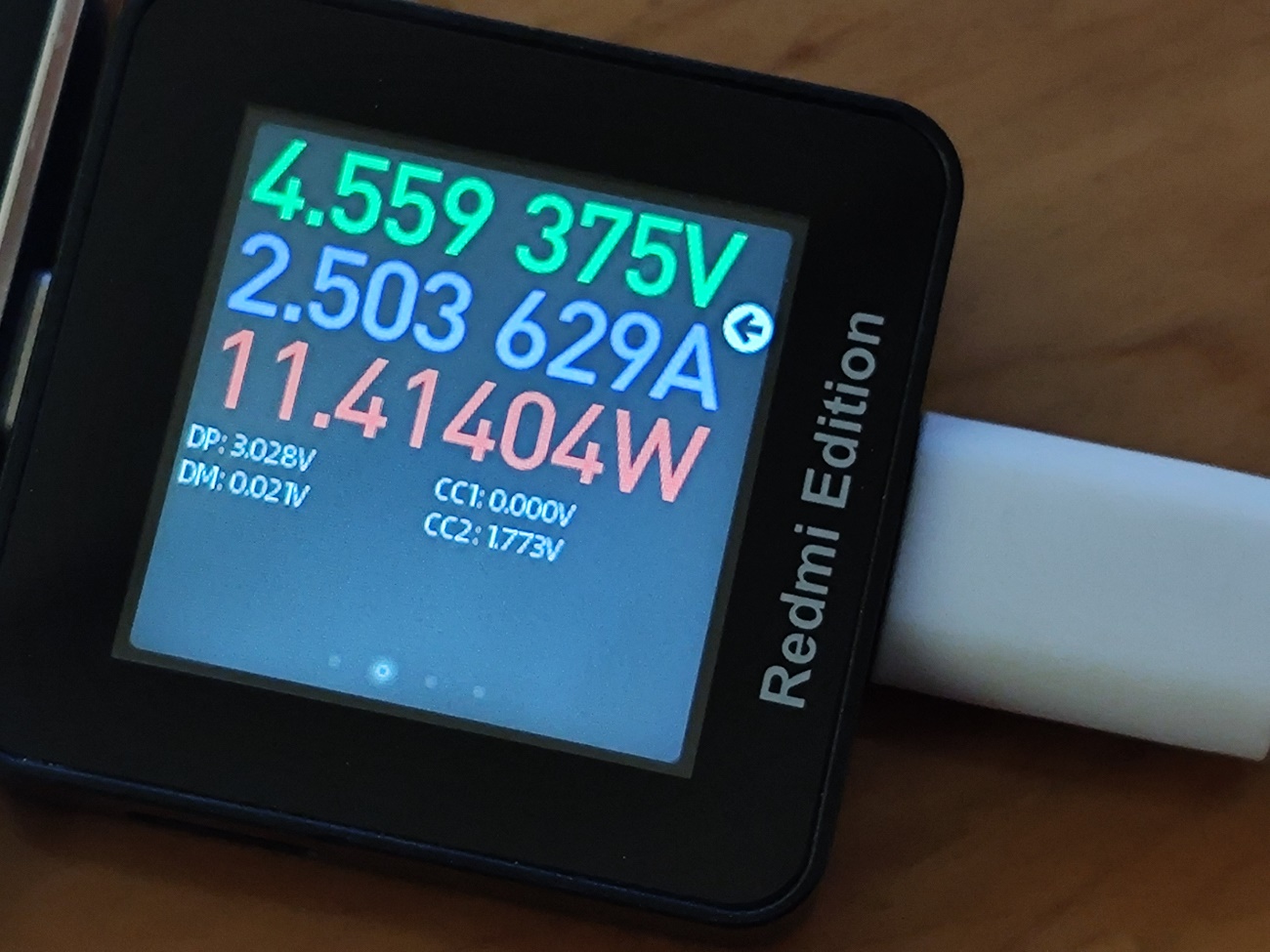 显示器支持最大15W的反向充电,由于这里手机已经拥有42%的电量所以输出瓦数有一定差异。