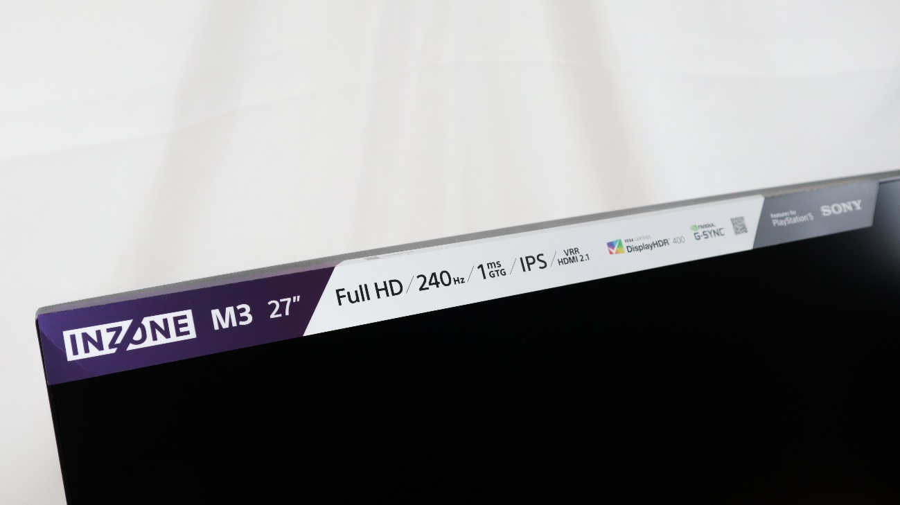 INZONE M3采用家族化设计,在外观方面和M9几乎一样,带支架的尺寸宽高深为61.5x47.9x24.8cm。在颜色设计上,不同于市面上常见的黑色为主,INZONE系列采用黑白搭配,外观高级感满满。屏幕正面采用三边窄边框设计,底部的边框也并没有很突兀,点亮屏幕正面整体观感还是比较在线的。相比M9,M3背部的氛围灯被取消掉了,按键依旧采用五项OSD遥杆。