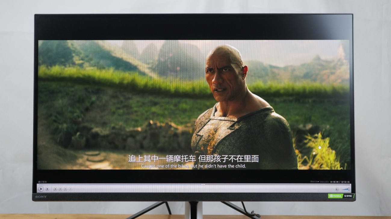 播放4K电影整个画面非常的锐利,由于它漏光控制十分优秀,明暗对比强烈的画面看起来也比较干净,没有那种灰蒙蒙的感觉,而且INZONE M3的自带音响也在,虽然音质上肯定比不上外接音响以及耳机啥的,临时应付一下也可以。