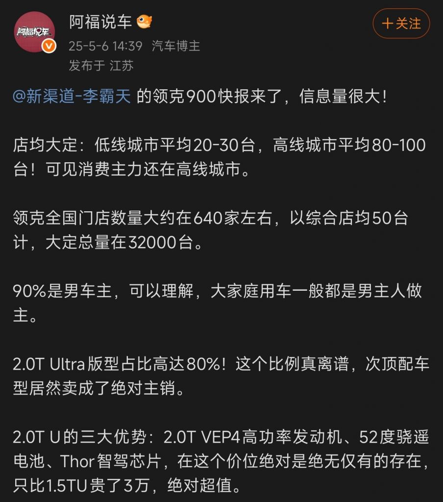 30万以上的车居然80%是36万的次顶配(顶配就是用来拉高售价的),微博上搜了下现在大定量大概4.5万,这成绩都不见官方出来吹