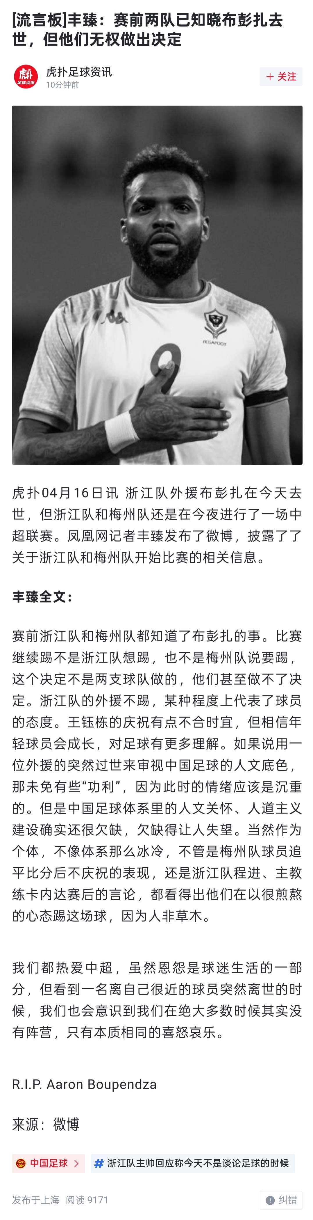 最后,RIP布蓬扎,浙江队的9号前锋,感谢你来到这里,如杭州的繁花般绽放,也愿你在这美丽的春中安息。