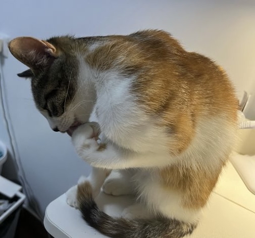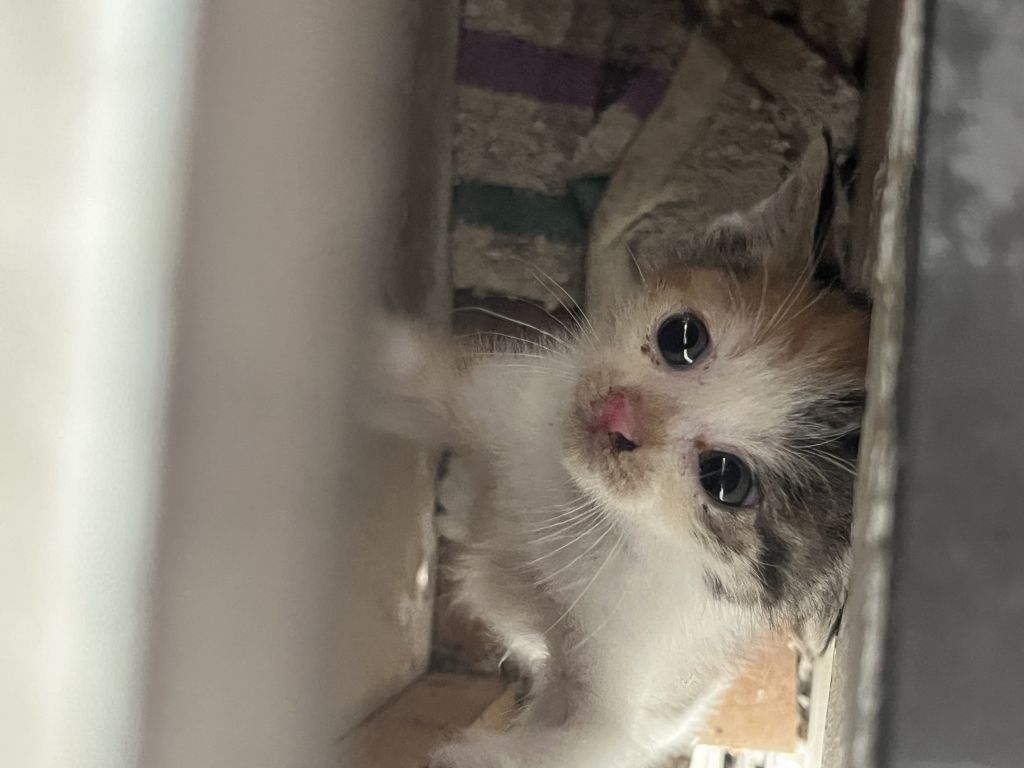 这是我捡到的第四只猫,困在楼梯和玻璃之间的小缝隙里,一把抓住后送到医院检查,幸好除了跳蚤之外暂且没有别的大问题,现在家养一段时间,治得差不多了,打完第一针疫苗,就可以找领养了,希望能顺利