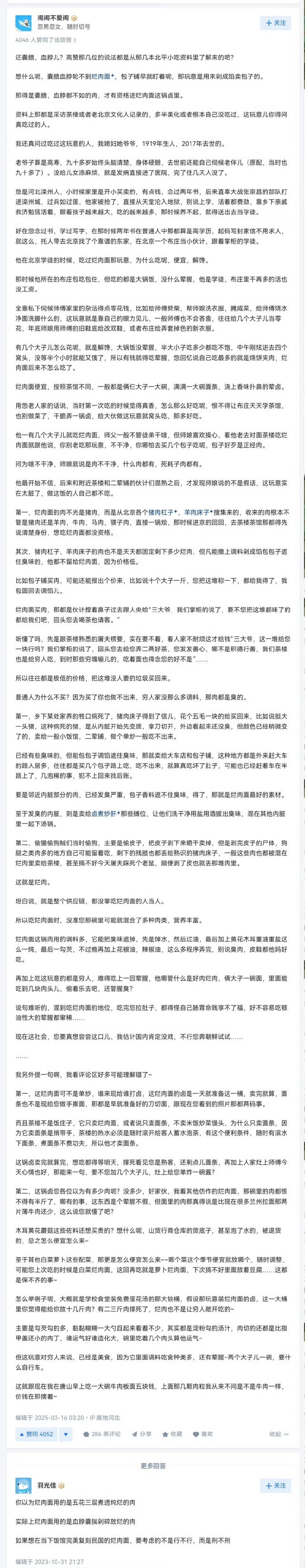 最开始知乎的观点是,烂肉,就是一大锅炖了不知道多久炖烂了肉,当浇头淋在面上吃,类似丐版打卤面