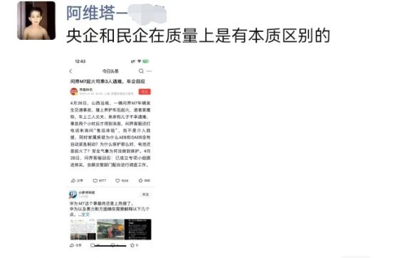 看了下几个论坛,b站,抖音,车圈直接疯了,各种话术全是恨不得华为死。再看下死者家属新闻,明明买的是智障版,后面贴订单啥的都是智驾版,张口闭口我弟弟天天吹科技,结果死在了科技下。话说你这么追求自驾科技,为啥不加5万买智驾版?这速度撞车一看人是直接没的,你还怪拉不出来致死?就这么想吃人血馒头是吧?当初订车时候但凡了解一点也能知道只有max的智驾版,有激光雷达是华为自己的东西吧,现在只口不提统一口径就是智驾不行。说真事,我哥们提问界智驾版第二天就一家三口去吉林玩了回来路上沈吉高速120迈智驾自己变道躲避不放三脚架不打灯的肇事车。我也没事就借车试驾,前几天刚更新ads3.0,城区有的地方也不再犯傻了,正合计搞个2驱的m5智驾