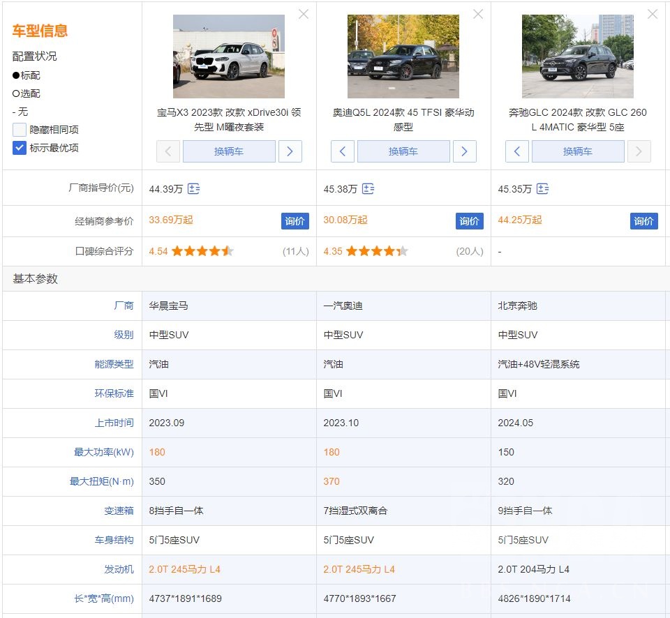 GLC和Q5L看着都不小,唯独X3显小,好几次一眼扫过甚至第一眼印象当成是X1。。。。。。