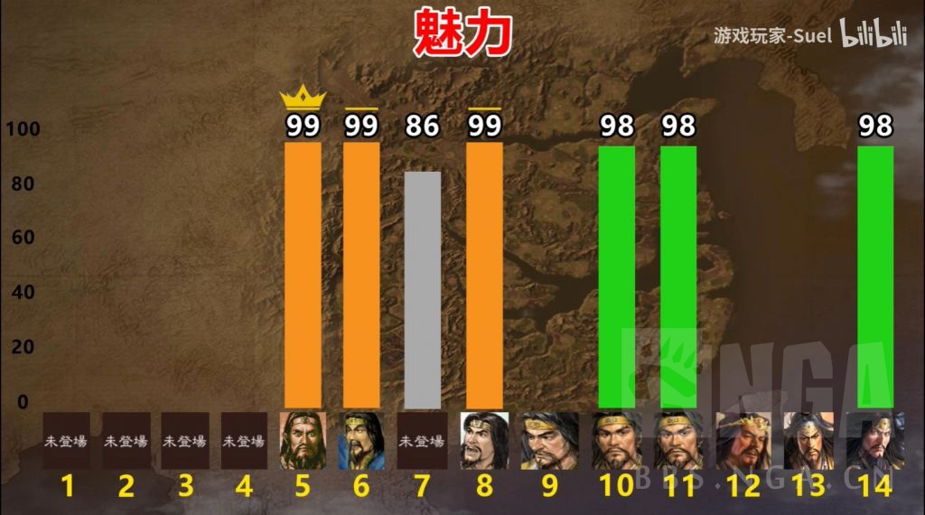 加上之前公布的关羽孙权魅力95,荀彧周瑜貂蝉94,孙策92,孙坚91,司马懿83。