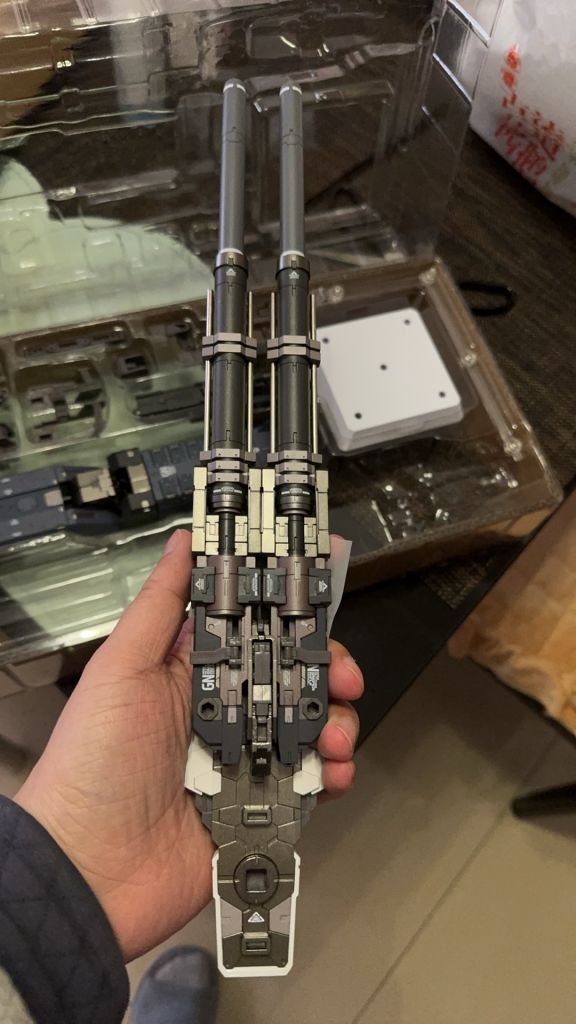 4.说到mb的这个合体、武装玩法,个人感觉是比mb其他更舒服的。异端和闪电背包合体背后接口很难插进会松松的、海盗素体上披风掉件卡不牢、seed无限背包计划腕部桩安装比较烦人、红龙大量配件但是本体很难扛住….(可能是个人中奖);但是00的mb系马甲应该也吃了新时代设计/加钱的红利,整个安装方案设计是非常牢靠,并且不掉件的;