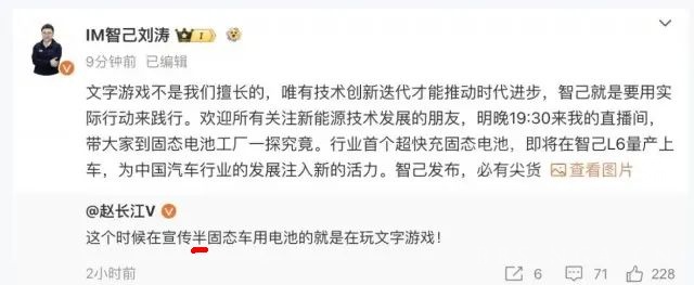 比亚迪的高管赵长江近日在微博宣称:这时候宣传半固态电池就是文字游戏!