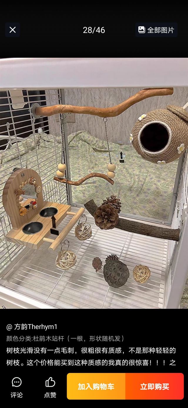 去年五月买了两只同窝的牡丹鹦鹉,现在已经快一年了,最近布置了原木风新窝,小鸟很喜欢。装修思路是尽量不要线之类的,用原木替代,以及不要遮顶窝,好清理。目前观察下来基本都没问题。