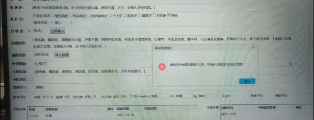 - 当前诊断“发热”“头痛”不完整,未体现高血压危象及神经系统症状,需修正为:
