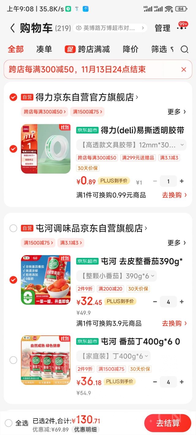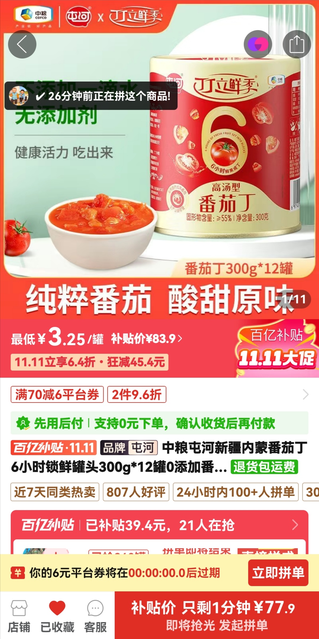 4件6罐的整番茄,凑单几毛的小玩意,200-20然看看有没有99-10的超市券