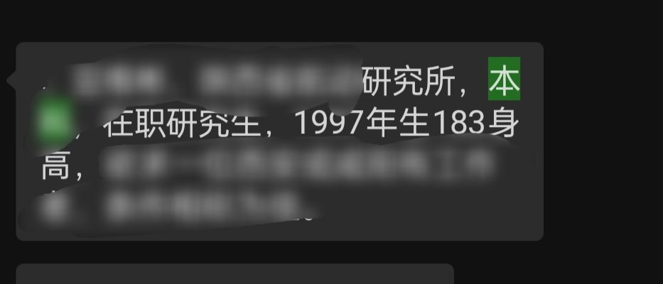 最后有一个估计要成了,97年,211硕士独生子,父母都是副处级干部,178左右偏瘦,脸小,我侄女说终于遇见个稍微能看的过去的了,家庭也可以,准备处一处 ,
