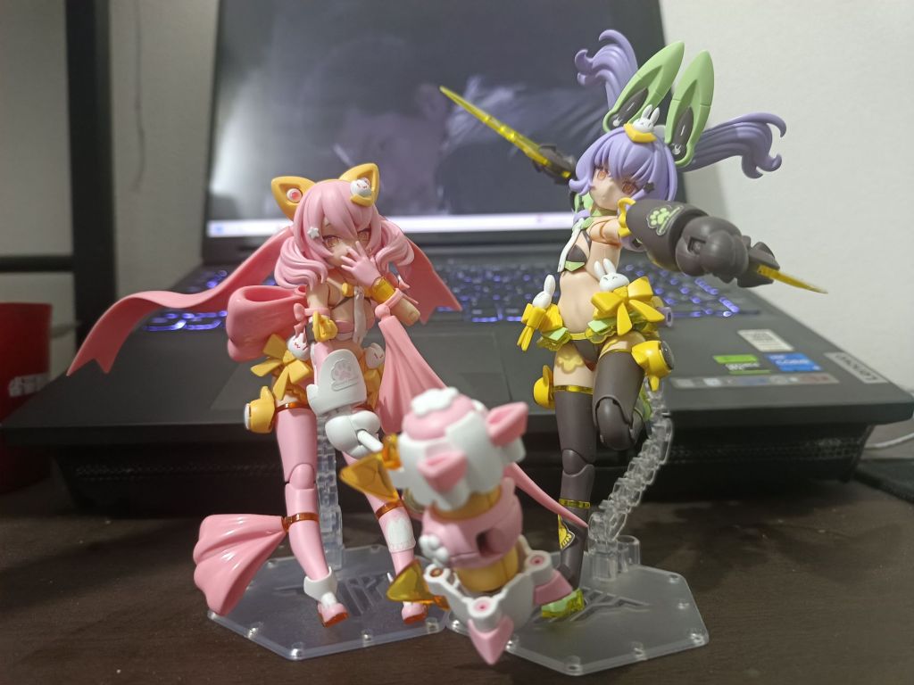 其二是寿屋女神装置的猫猫搭配改件,挺可爱的就是改件的腰部关节实在松了点……