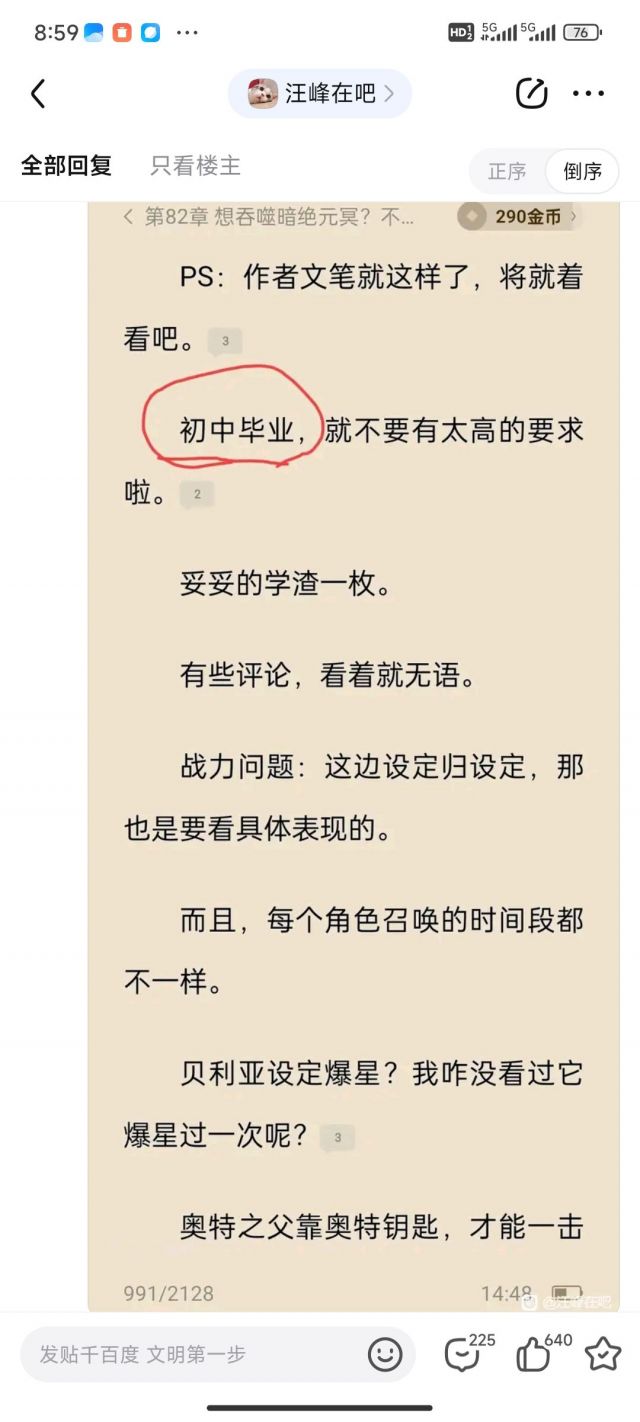 然后作者表示自己不懂汪吧,书里是自己认为的战力,自己会给小说一个完美结局