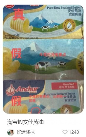 然后看评论,不少人买了说味道不太对,可能是植物黄油,但看图片包装都是安佳的。